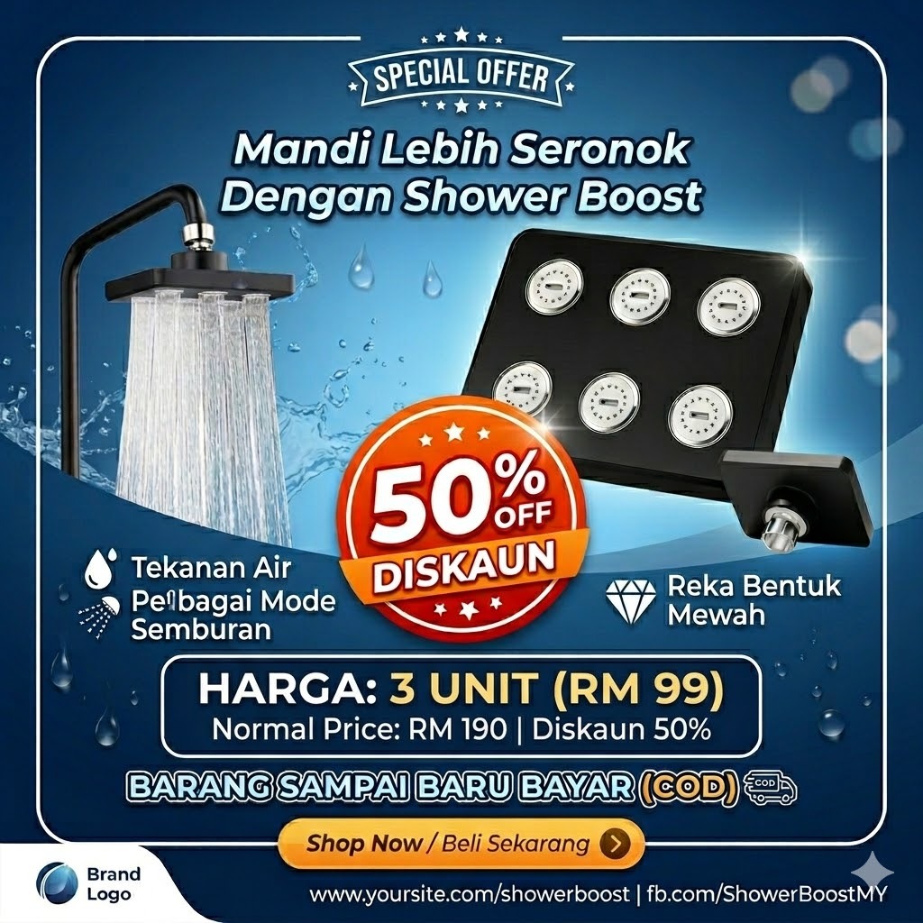 TERIMA KASIH KEPADA SHOWER BOOST MODEL TERBARU NI !